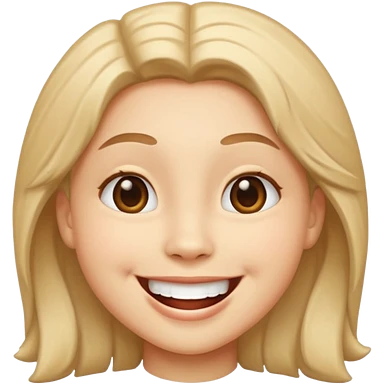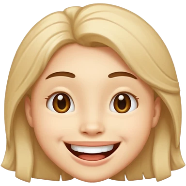 Girl, with blue eyes, with blue caret hairs, with black t-shirt, happy emotion emoji