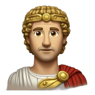 Create an emoji of a Roman emperor, wearing a laurel wreath and a red toga with gold trim. He has a stern expression, short hair, and a dignified, authoritative look emoji