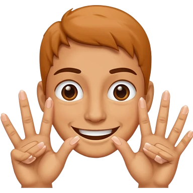 Happy face with tongue out with a number six in the left hand and number seven in the right hamd emoji