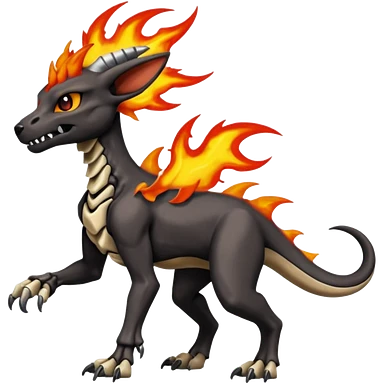 Skeletal Shiny Glowing Badass Edgy Evil Fiery Flaming Volcanic Draconic Cubone-Salandit-Houndoom-Houndour-Marowak-Poochyena-Litten-Fakémon-hybrid-creature (full body), 4 legs emoji