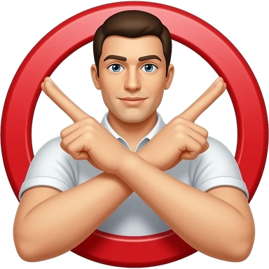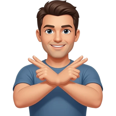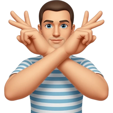 A person making an “X” gesture with their arms crossed in front of their chest, clearly signaling “no” or “stop”. The pose is front-facing, with both arms forming a bold X shape. Neutral background, clear visibility of the gesture, expressive and easy to understand. emoji