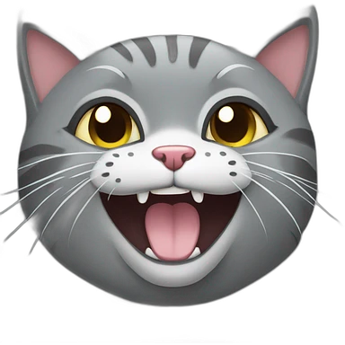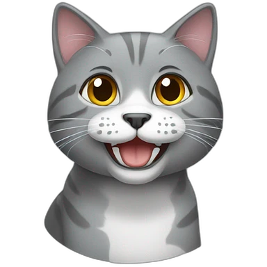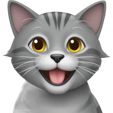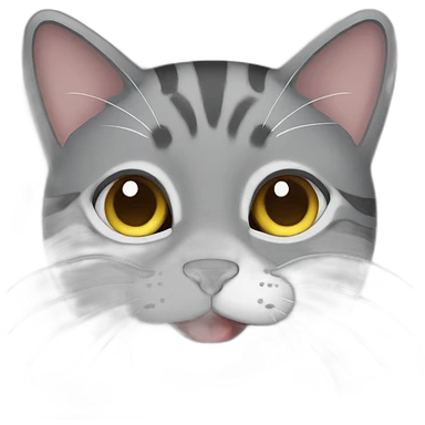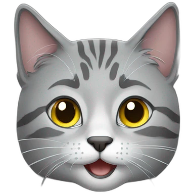 A grey tabby cat with a pink nose and green eyes is happy emoji