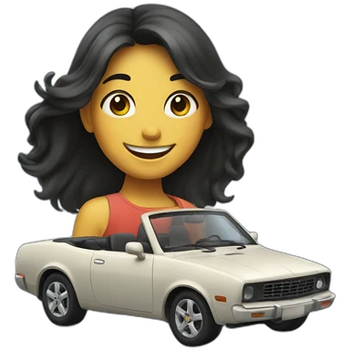 happy car with happy girl who is black long hair emoji