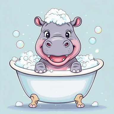 happy hippo with bubbles in bathtub image | AI Emoji Generator