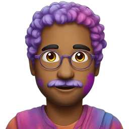 Krishna in holi with gulal on his face and mor pank on his head emoji