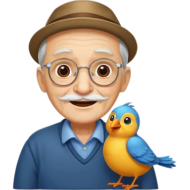 happy old man with bird emoji