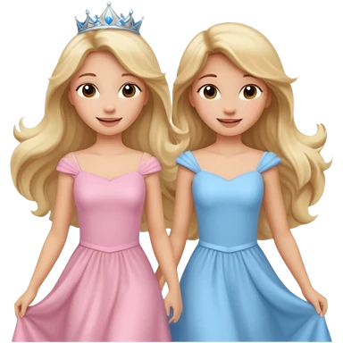 happy princesses blonde girl in light blue dress and long hair brunette girl in light pink dress emoji