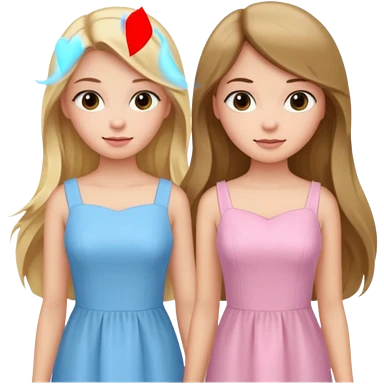 happy long hair brunette girl in light pink dress and blonde girl in light blue dress pride and prejudice emoji | AI Emoji Generator