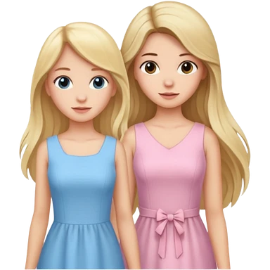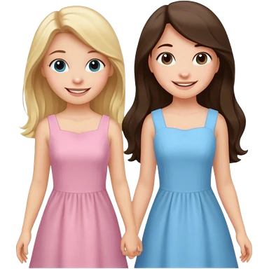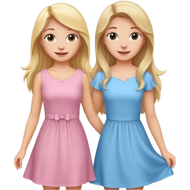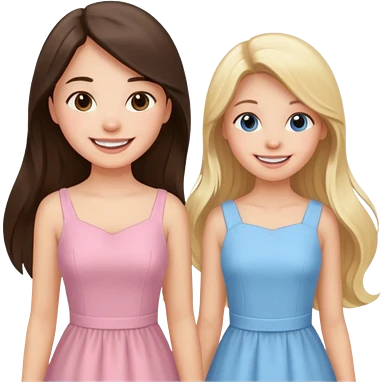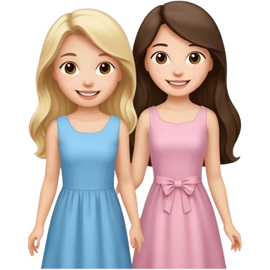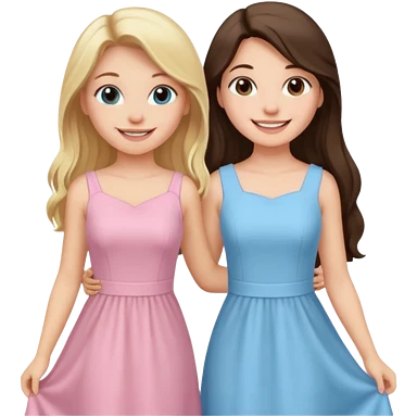 happy blonde girl in light blue dress and long haired brunette girl in light pink dress emoji