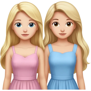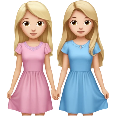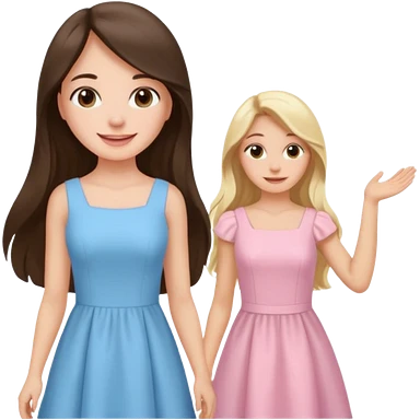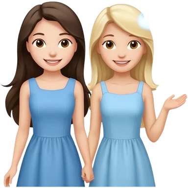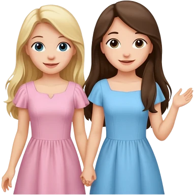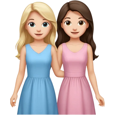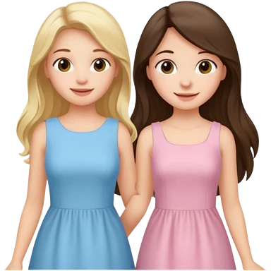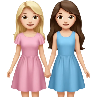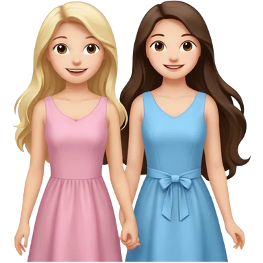 happy long hair brunette girl in light pink dress and blonde girl in light blue dress emoji