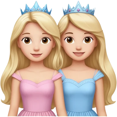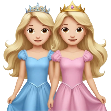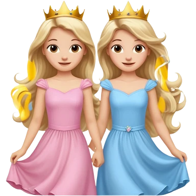 princess happy blonde girl in light blue dress and long haired brunette girl in light pink dress emoji
