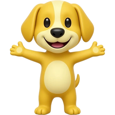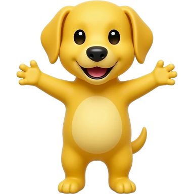 A completely bright yellow dog, standing up with legs and arms open like a little person, looking at us with a very happy expression. Its body is completely brigth yellow. emoji