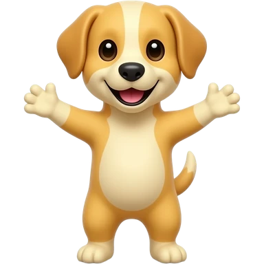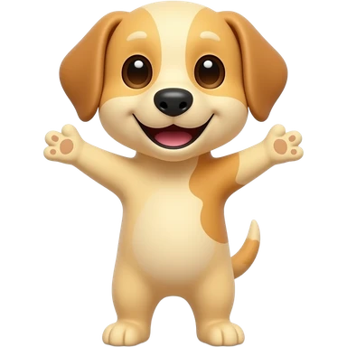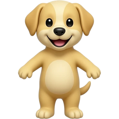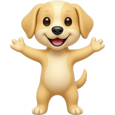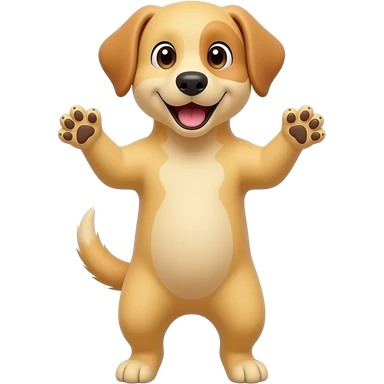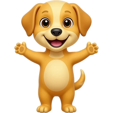 A completely light yellow dog, standing up with legs and arms open like a little person, looking at us with a very happy expression. Its body is completely yellow. emoji
