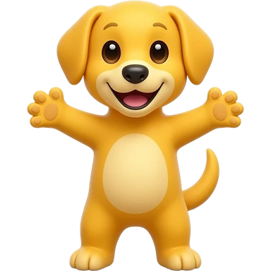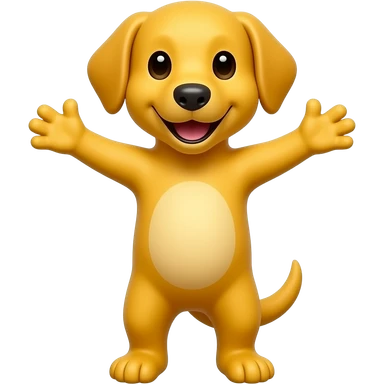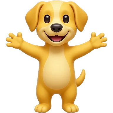 A completely yellow dog, standing up with legs and arms open like a little person, looking at us with a very happy expression. Its body is completely yellow like the sun. emoji