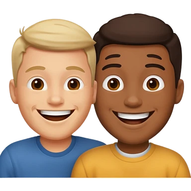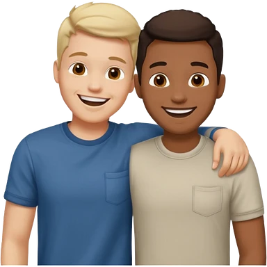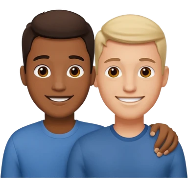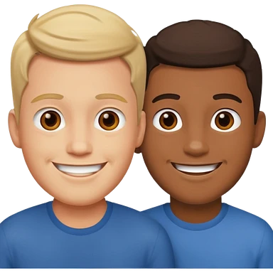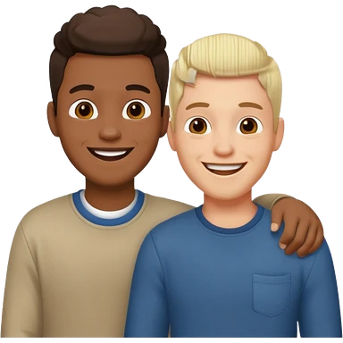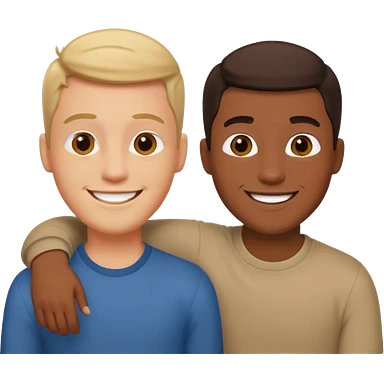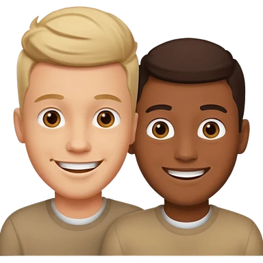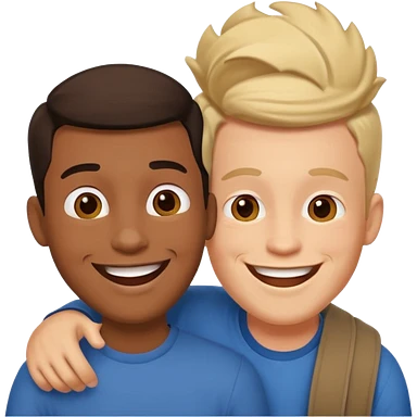 The person(male) has a medium complexion, wavy dark hair coming on his forehead, well-defined facial features with a strong jawline, full lips, and happy expression. They are wearing a white shirt layered with a brown jacket emoji