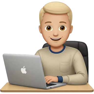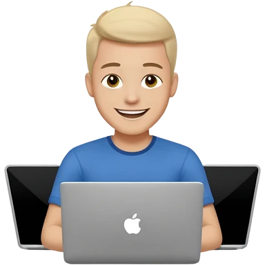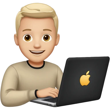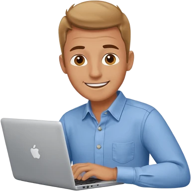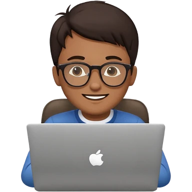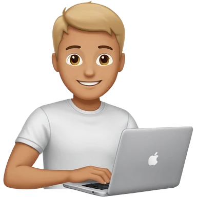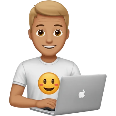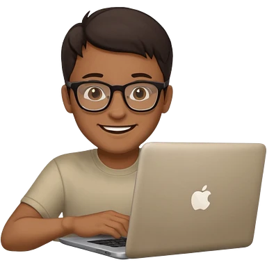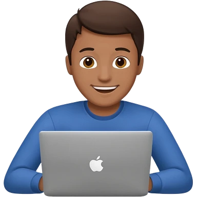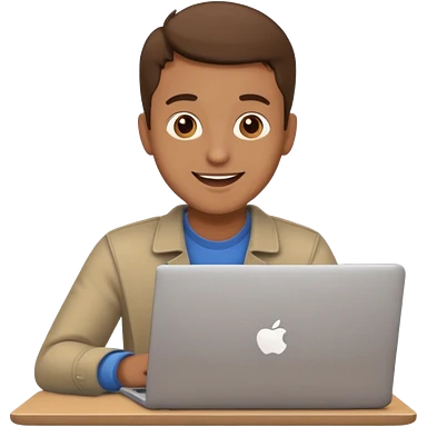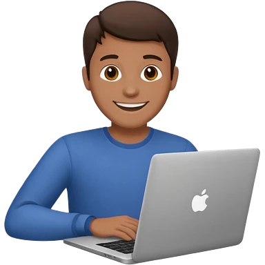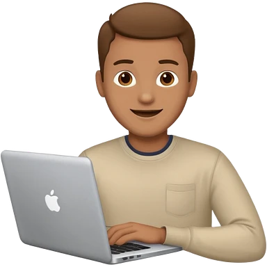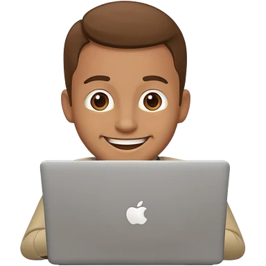 happy man on laptop with light brown skin color , with dark hair front of laptop emoji | AI Emoji Generator