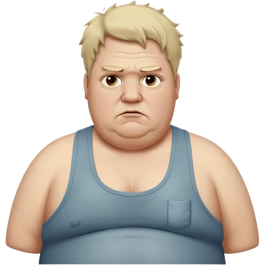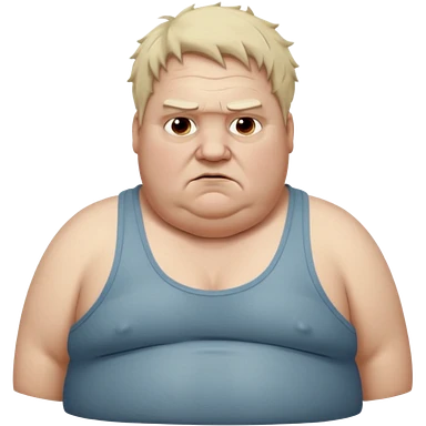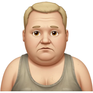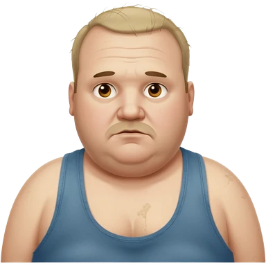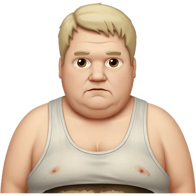 very obese middle aged white man in wifebeater with dirty appearance. His hair is very greasy and he looks lazy and uncaring emoji