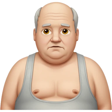 very obese middle aged white man in wifebeater with dirty appearance. His hair is very greasy and balding emoji