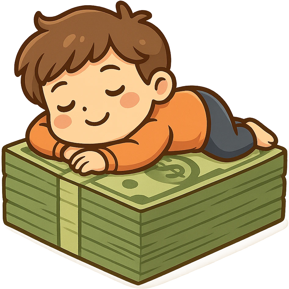 happy person napping on mattress of money emoji | AI Emoji Generator