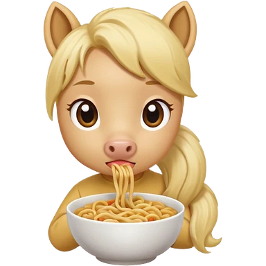 blonde pony eating noodle emoji