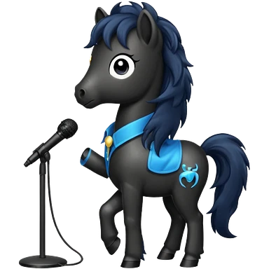 black pony with microphone emoji