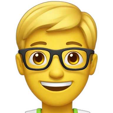 smiling programmer with big glasses and buck teeth, holding a laptop emoji
