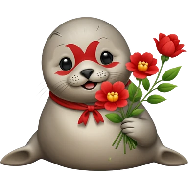 Happy seal holding red flowers emoji | AI Emoji Generator