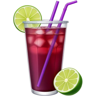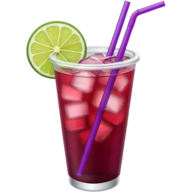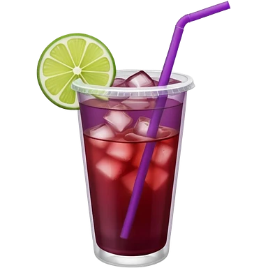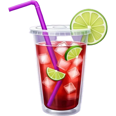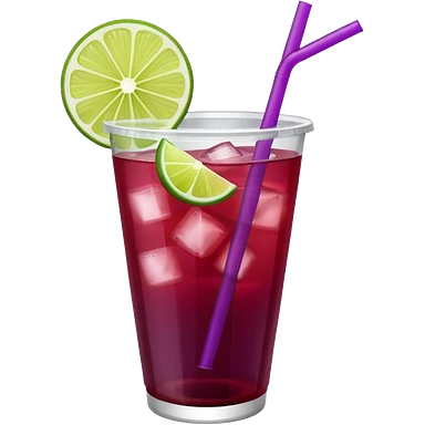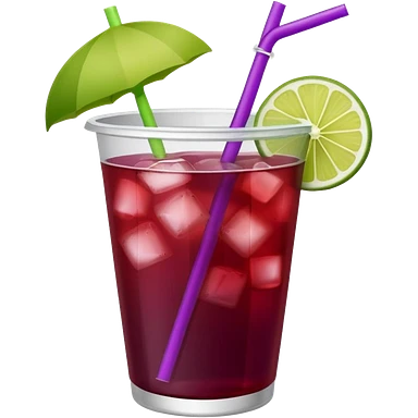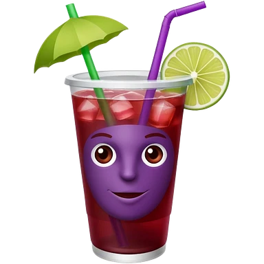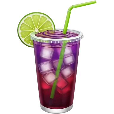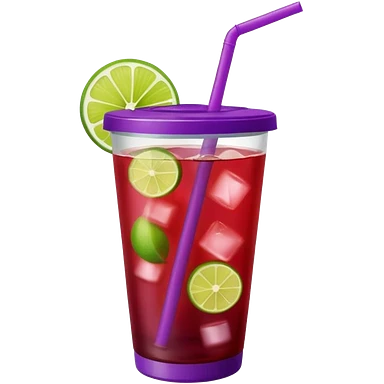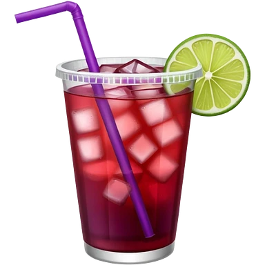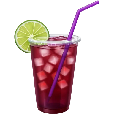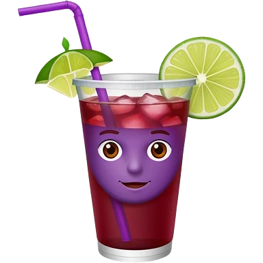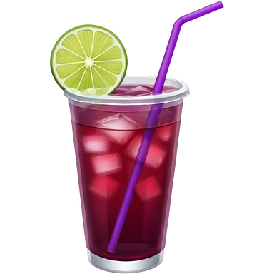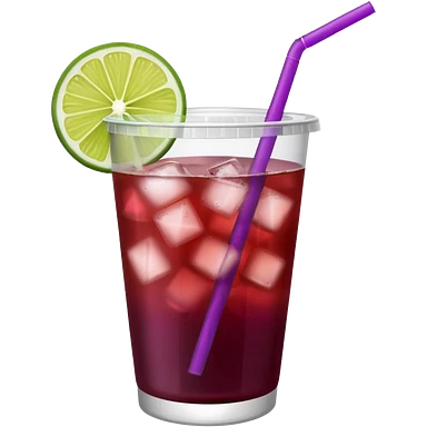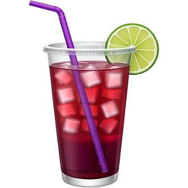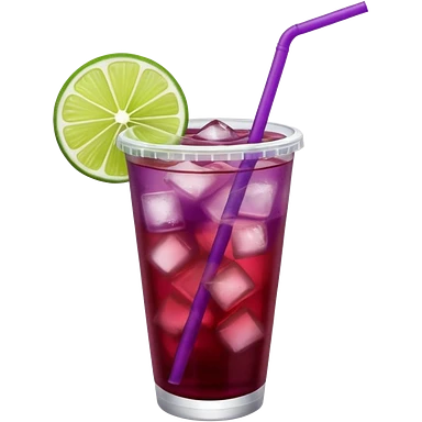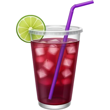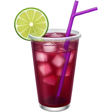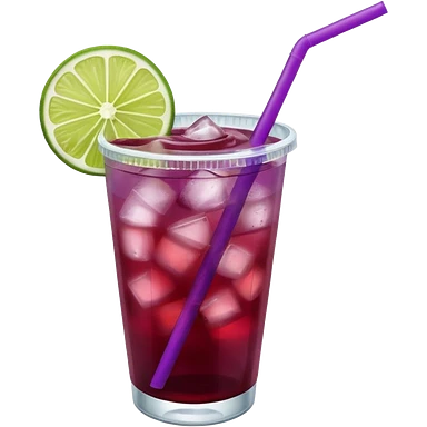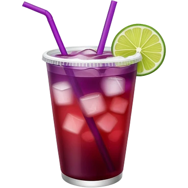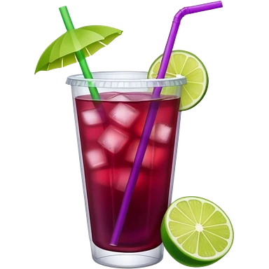 maroon purple cocktail with a lime wedge in the drink in a plastic cup with lid and straw emoji
