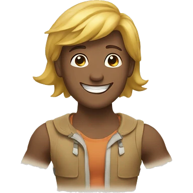 a traveler with a suitcase beside a city welcome sign, friendly and vibrant emoji style emoji