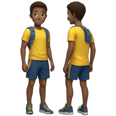 happy white kid with yellow shirt and dark blue shorts emoji | AI Emoji Generator