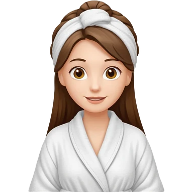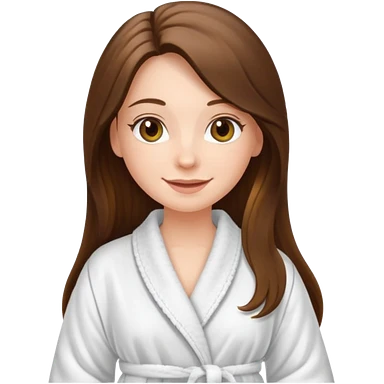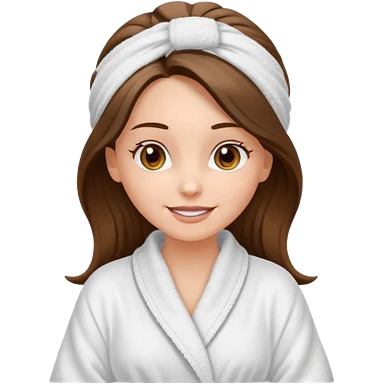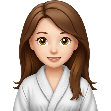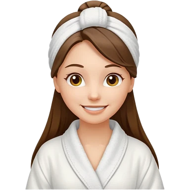 happy white long brunette hair girl with hazel eyes in a bathrobe emoji