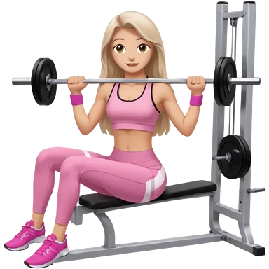 happy pretty white brunette teen long hair with hazel eyes in light pink workout clothes doing a smith machine hip thrust emoji