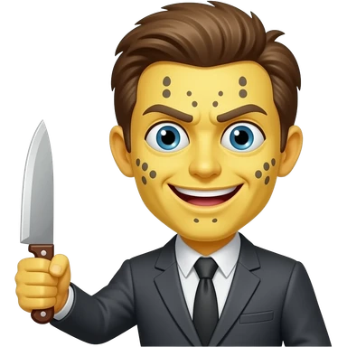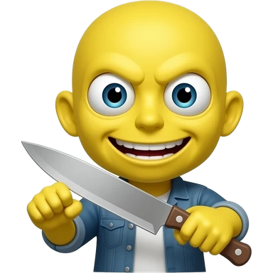 Yellow face with wide crazy eyes scary smile and a knife emoji