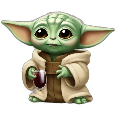 yoda baby with red wine glass emoji
