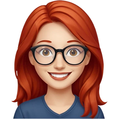 happy young woman with long red hair and glasses emoji | AI Emoji Generator