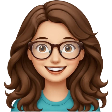 happy woman with long wavy brown hair and glasses emoji