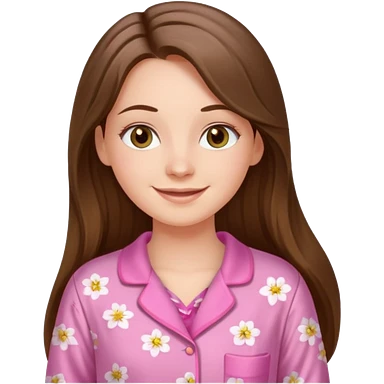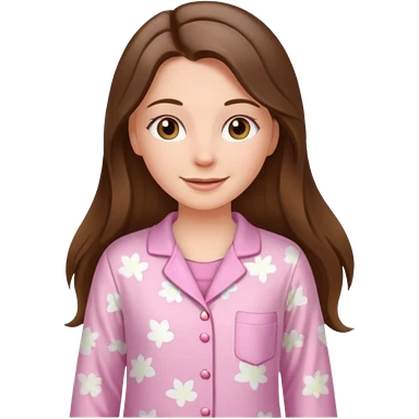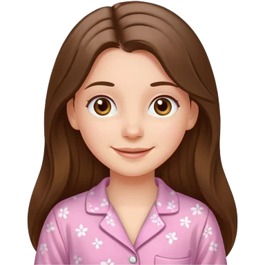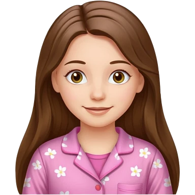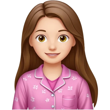 happy white long brunette hair girl with hazel eyes and in pink pajamas emoji