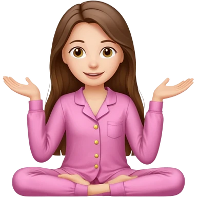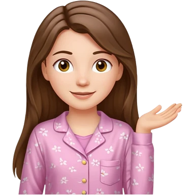 happy white long brunette hair girl with hazel eyes and in light pink pajamas emoji