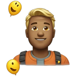 A white stick man that has a super hapy face and is blushing holding a cute small pink flower emoji
