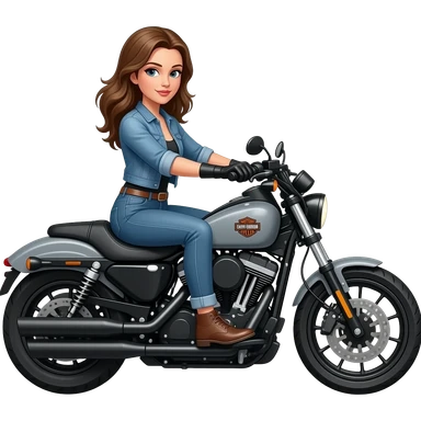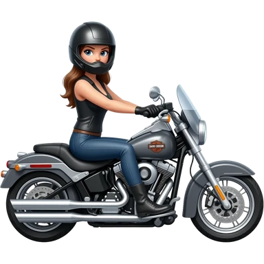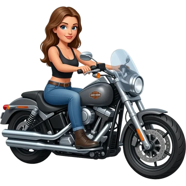 Harley Davidson iron horse metallic road glide with woman riding emoji | AI Emoji Generator
