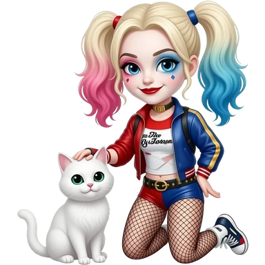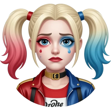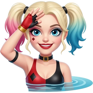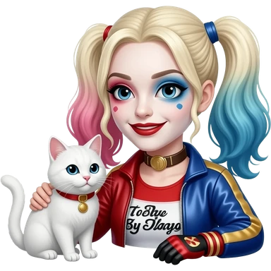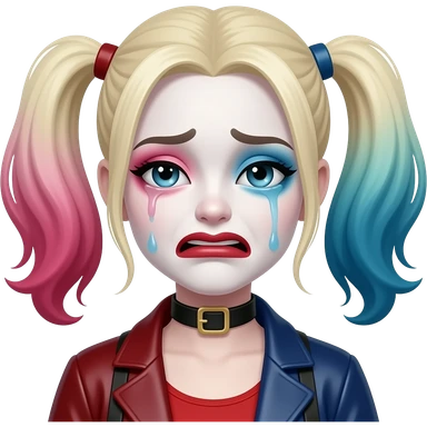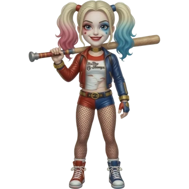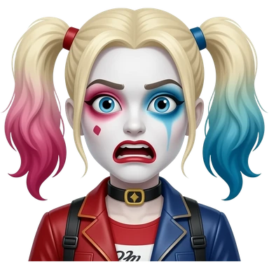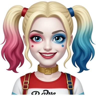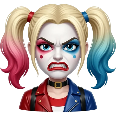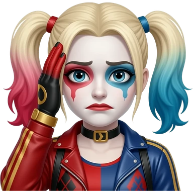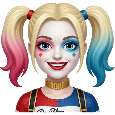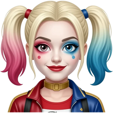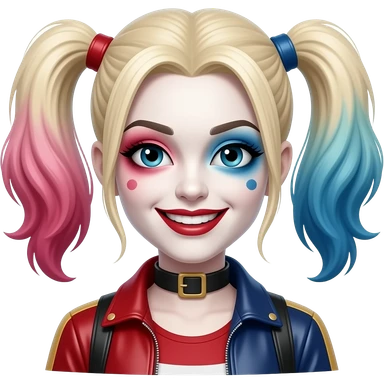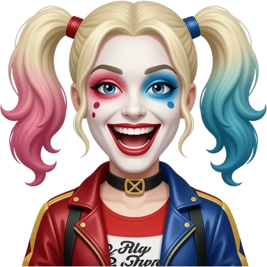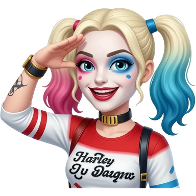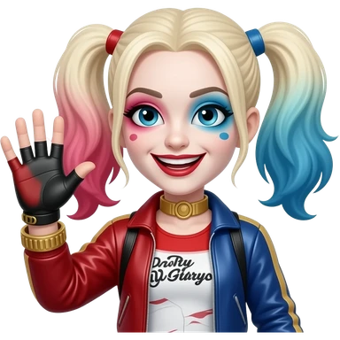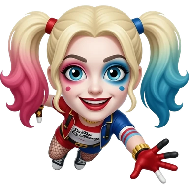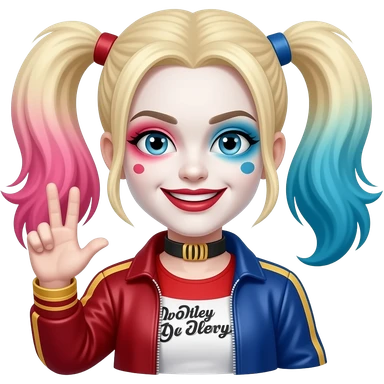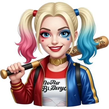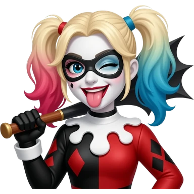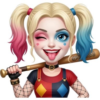 Harley Quinn sticking out her tongue with a wink holding a bat emoji