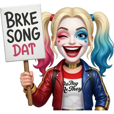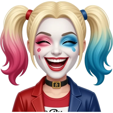 harley quinn haciendo que aguanta un cartel invisible riendose a carcajadas emoji