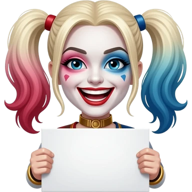 harley quinn con un cartel en blanco riendose a carcajadas emoji
