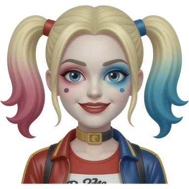 Margot Robbie as Harley Quinn with blue and red hair emoji