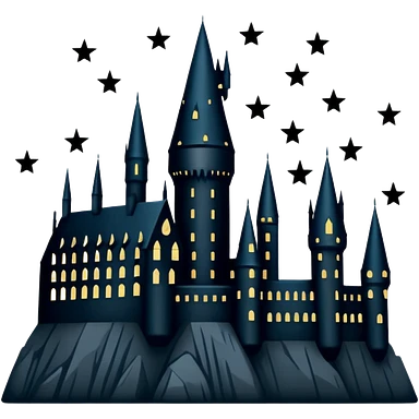 Harry Potter Hogwarts castle silhouette with stars, outlined icon emoji