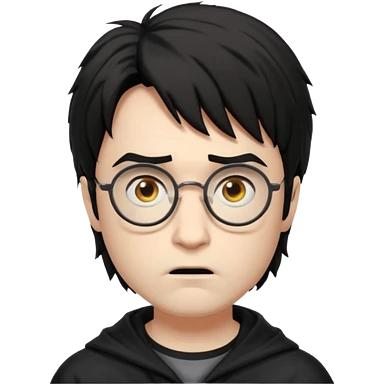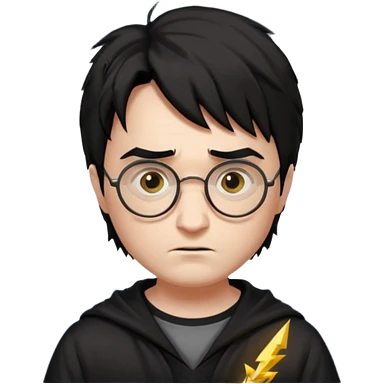 Harry Potter a pale white with shaggy black hair, glasses with a lightning-shaped scar on his forehead. He goes to Hogwarts School of Witchcraft and Wizardry to learn the magic of the wizarding world. emoji | AI Emoji Generator