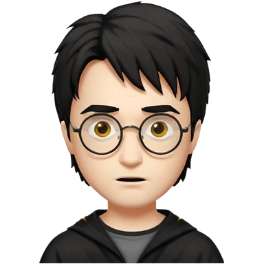 Harry Potter a pale white with shaggy black hair, glasses with a lightning-shaped scar on his forehead. He goes to Hogwarts School of Witchcraft and Wizardry to learn the magic of the wizarding world.emoji