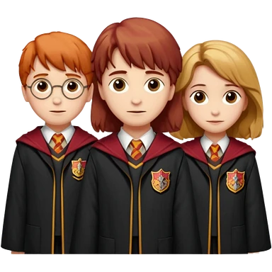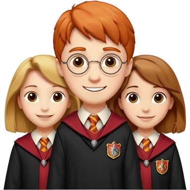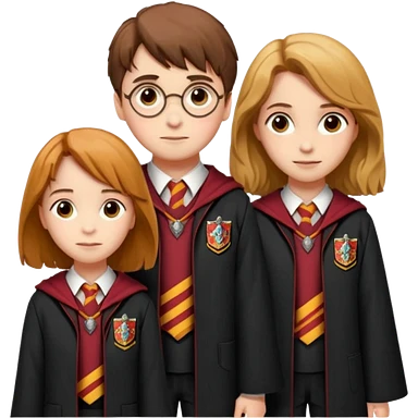 harry potter, ronald weasley and hermione granger in gryfinndor uniform emoji