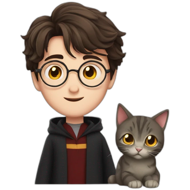 harry potter in gryfinndor uniforn sitting on firebollt hedwig sitting on hand emoji