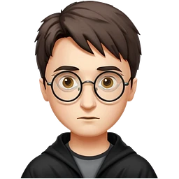 Harry Potter with round glasses, lightning scar, and wand emoji